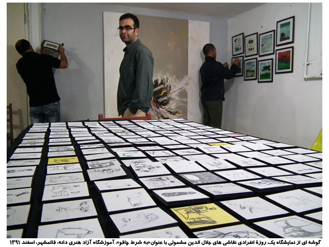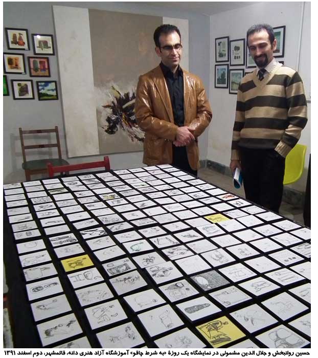 نمایشگاه و فروش نقاشی های کوچک از جلال الدین مشمولی در آموزشگاه آزاد هنری دانه، اسفند ۱۳۹۱ | 02/12/2013